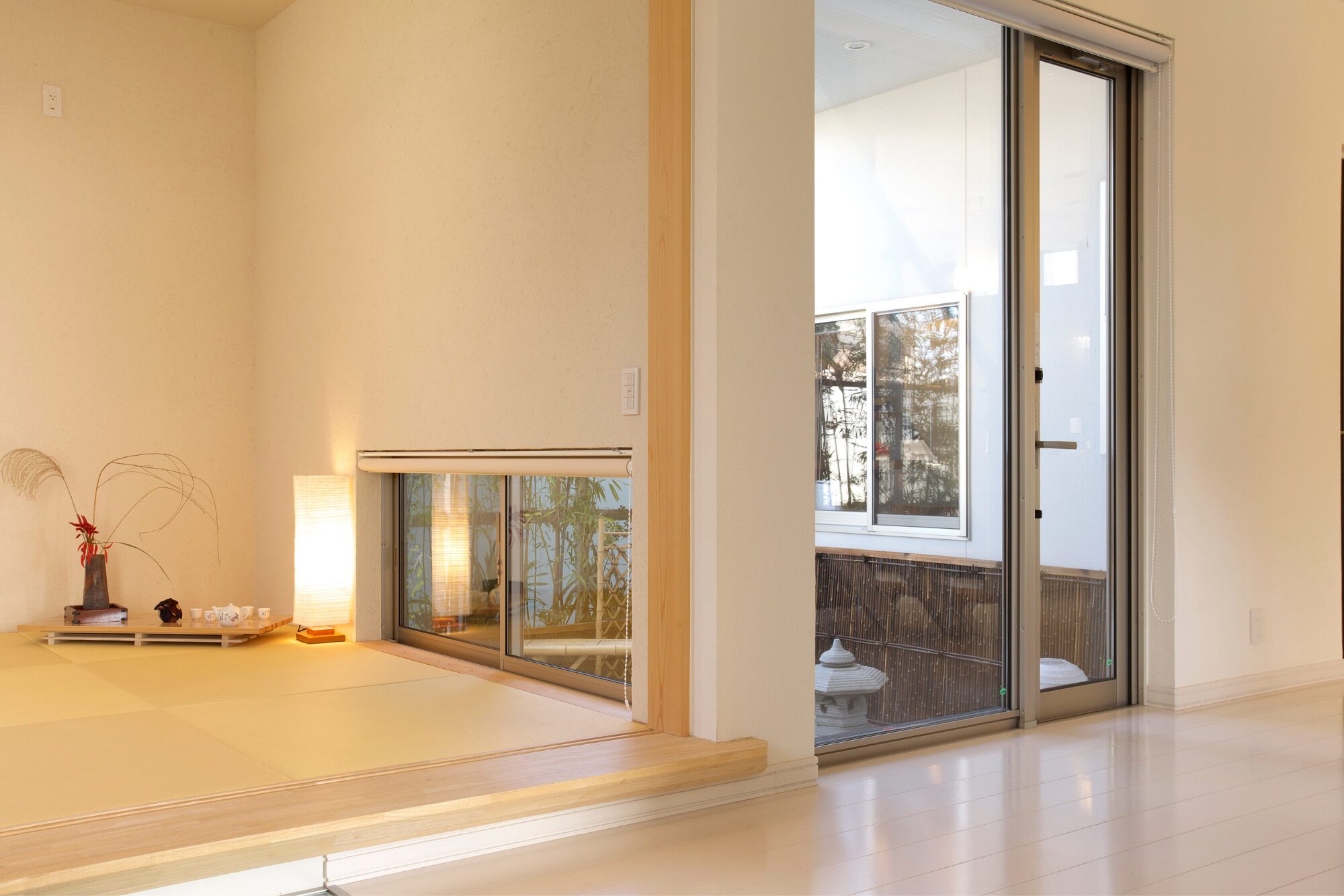 お部屋からより近い場所で自然を感じたい場合、坪庭や中庭を設けるのもおすすめです。小さなスペースでも窓越しに緑があると暮らしの中で四季を楽しめます。