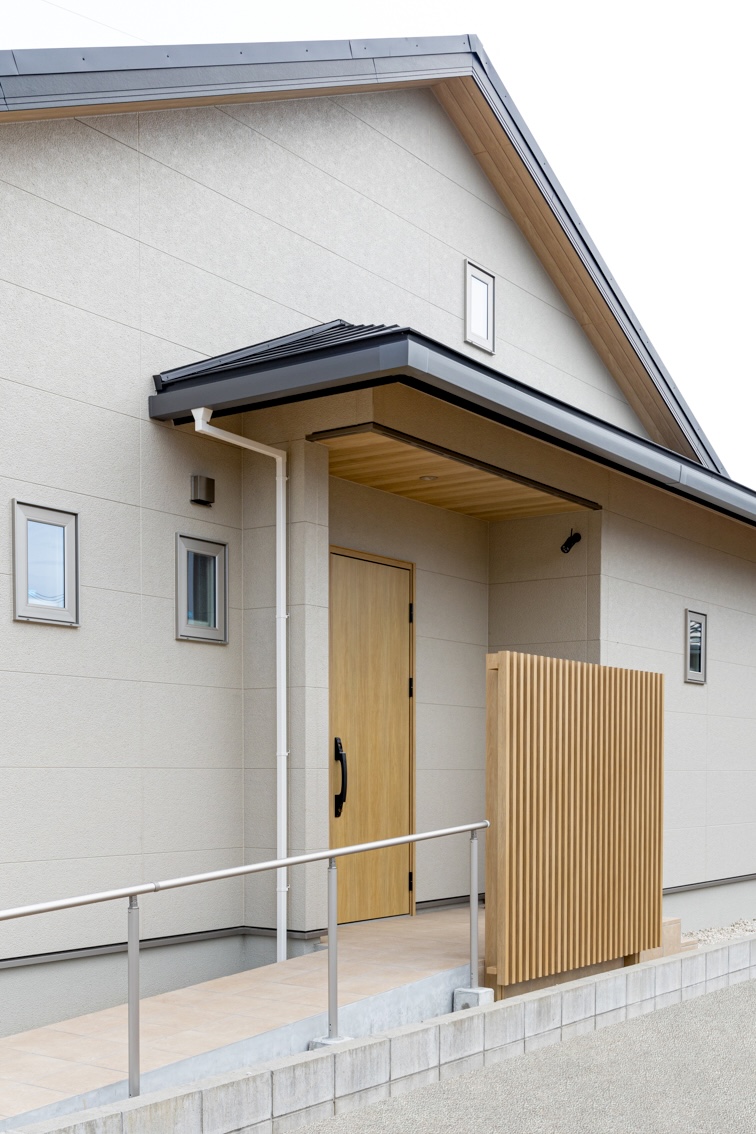 切妻、寄棟、片流れなど、住宅にはさまざまな屋根形状があります。切妻や寄棟はどちらかというとシンプルな見た目ですが、軒の出を長くすることで、堂々とした外観となり、どっしりとした印象を与えます。