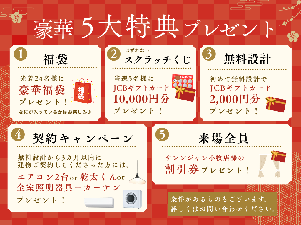 来場された方には、マイホーム応援キャンペーンとして豪華特典もご用意しています。