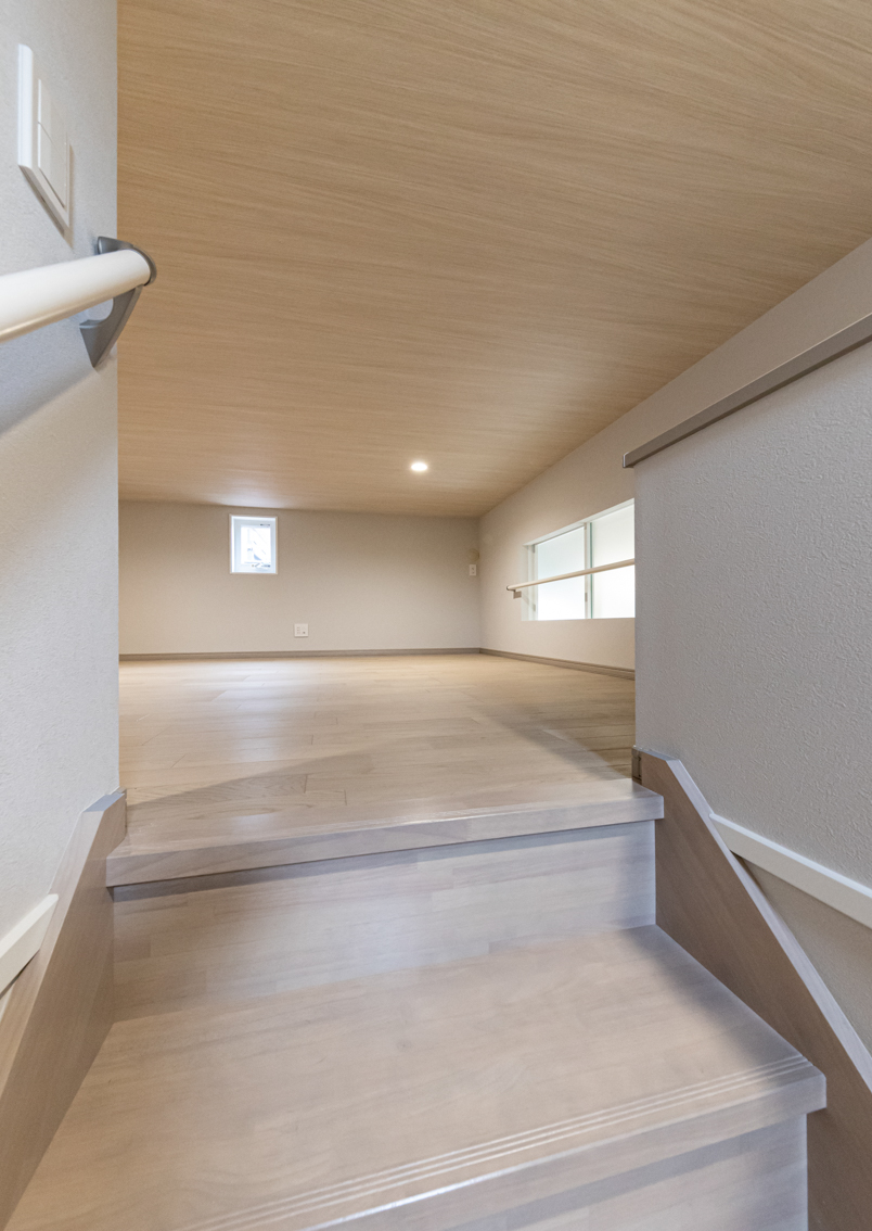 「使い道が多そう」という声が多いのがロフト。約10帖の広さがあり、収納スペースとしてはもちろん、趣味の空間や帰省したご家族用としても活躍します。ロフトはあっても使わないという印象をお持ちの方もいるかもしれませんが、固定階段を採用しているため上り下りがしやすく、平屋の暮らしの幅を広げる空間として多用途に使えそうです。