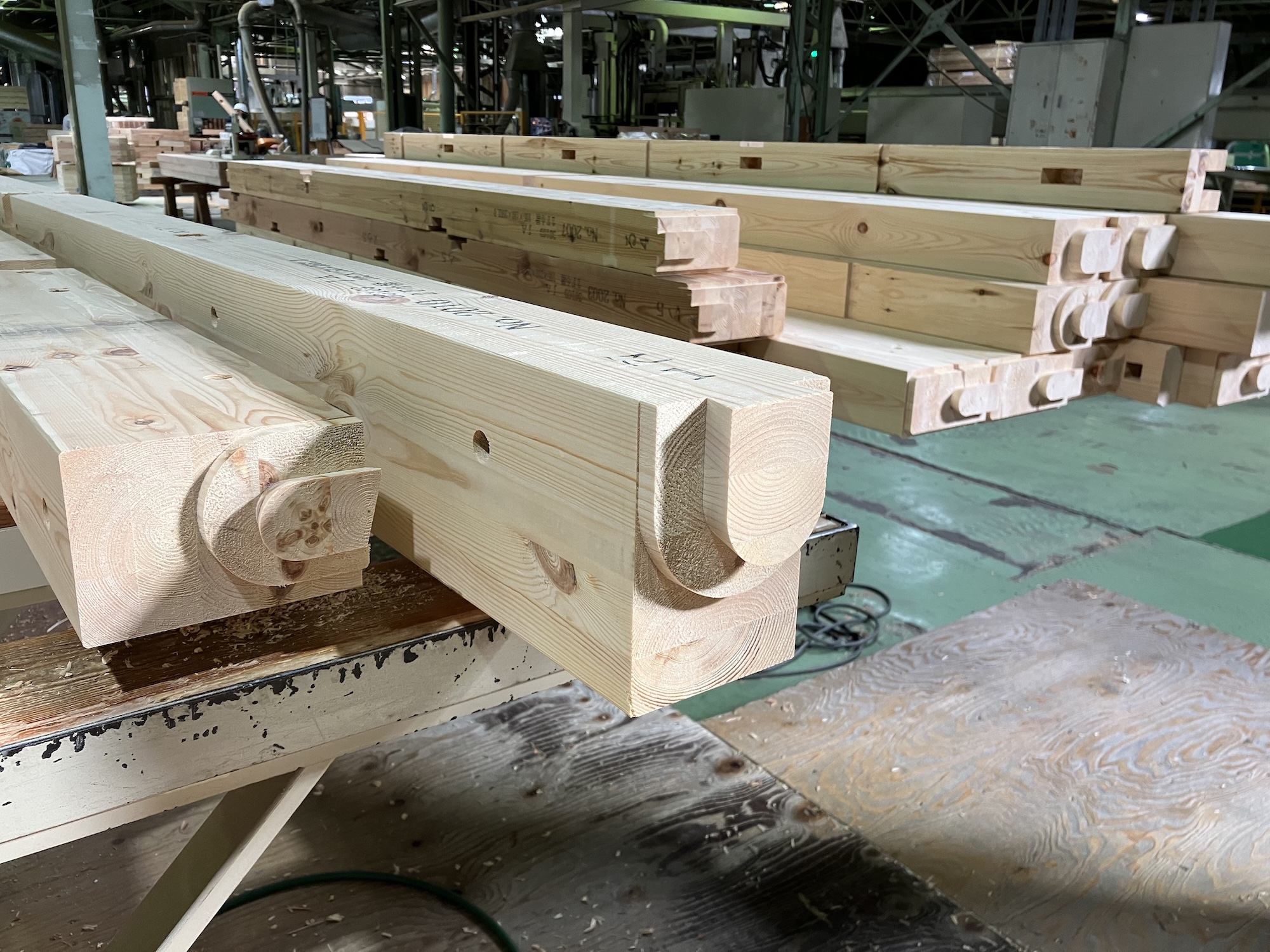 一方で、私たちのプレカット工場の見学は、実際に家に使われる木材そのものや構造材、加工の様子を確認できるのが特徴。ケー・エイチ・ケーの工場見学は、生産ラインを見るというよりも、木造住宅自体がどのようにできているかを知ることができます。