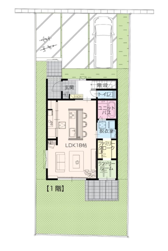 駐車場2台+庭も叶う広さ。