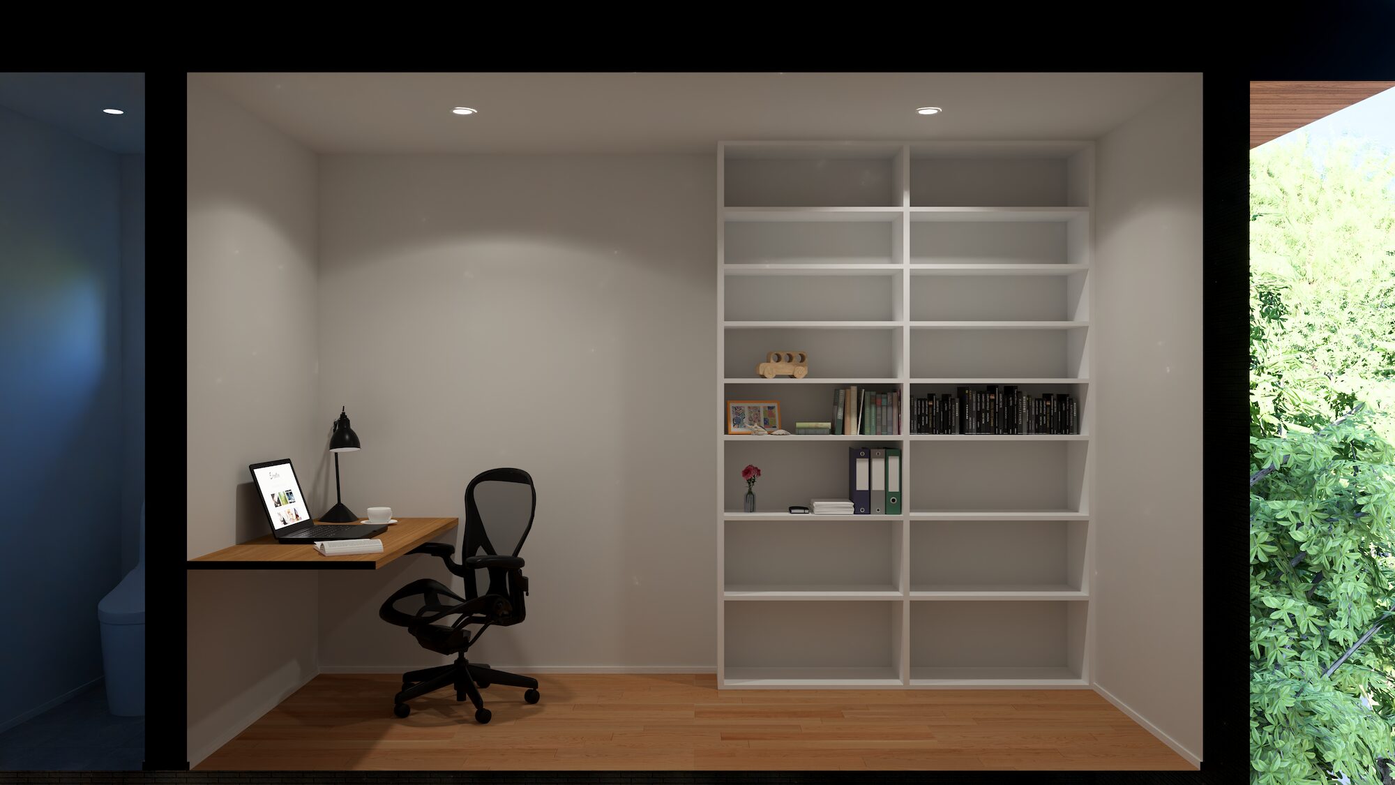 特に4帖の広さを確保した書斎には、仕事の資料をたっぷり収められる専用の書庫を設置しました。