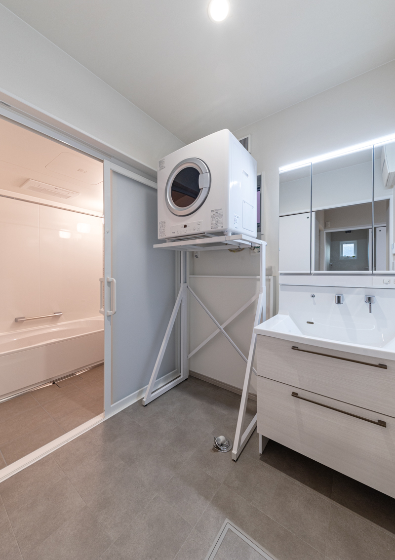 “洗う・乾かす・しまう” の動作が一か所でまとまる、日々の家事を助ける動線設計です。